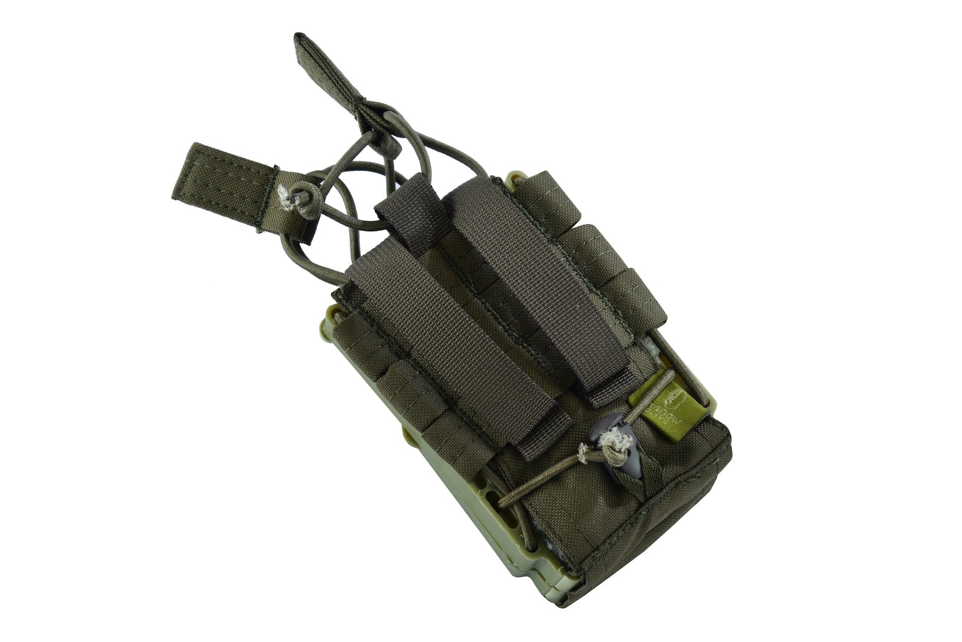 The Shadow Strategic Rapid Access Double Rifle Magazine Pouch is The Next Evolution in extremely popular Rapid Access series of Mag Pouches. Rapid Access will handle any type of Rifle Magazines thrown at it. Able to carry 2 Magazines in a single Pouch eliminates the need for double stacking The pouch is one piece of 4 layer laminated Cordura with 2 Plastic Brackets which are separated by a Nylon molded plastic sheet. The Plastic sheet has holes on it which adds a bungee loop at the top for over the top bungee retention. Made of Cordura, Polymer, and shock-cord. It is silent when struck against by a hard object and while extracting the mag.